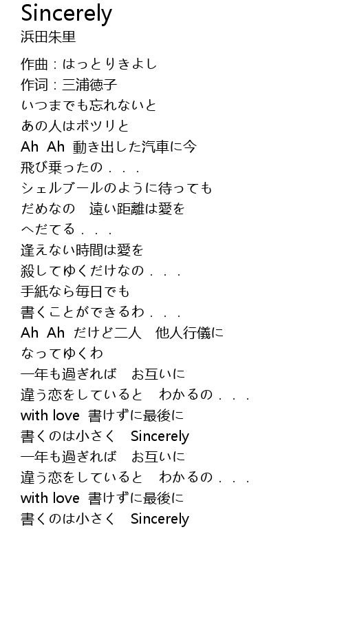 Sincerely Lyrics