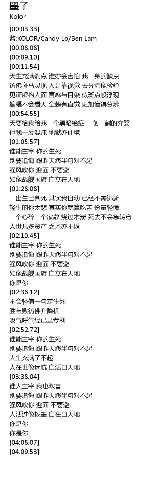 | [03:55.28] | 人活过像拨墨 自在自天地 |