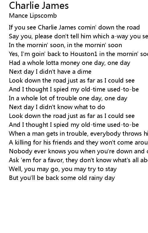 If you see Charlie James comin' down the road |