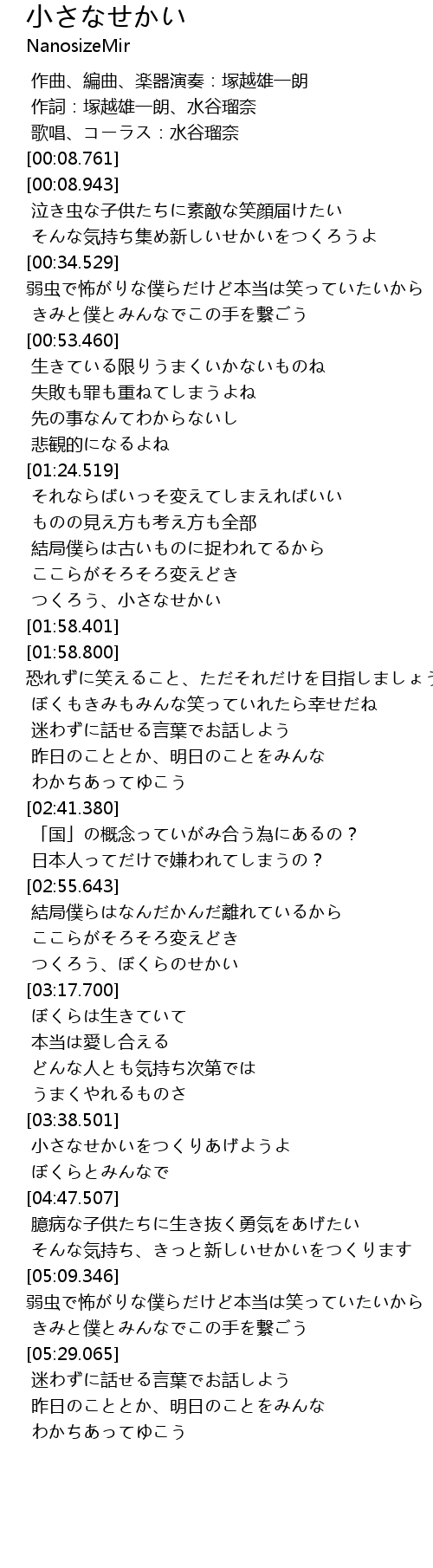 | [01:52.279] | つくろう、小さなせかい |
