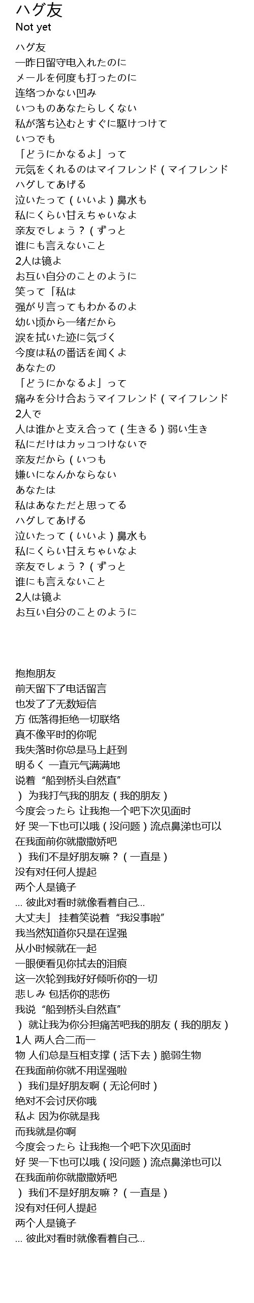 | [02:19.53] | 痛みを分け合おうマイフレンド(マイフレンド |