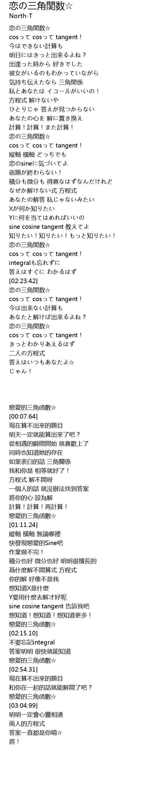 | [02:01.05] | sine cosine tangent 教えてよ |