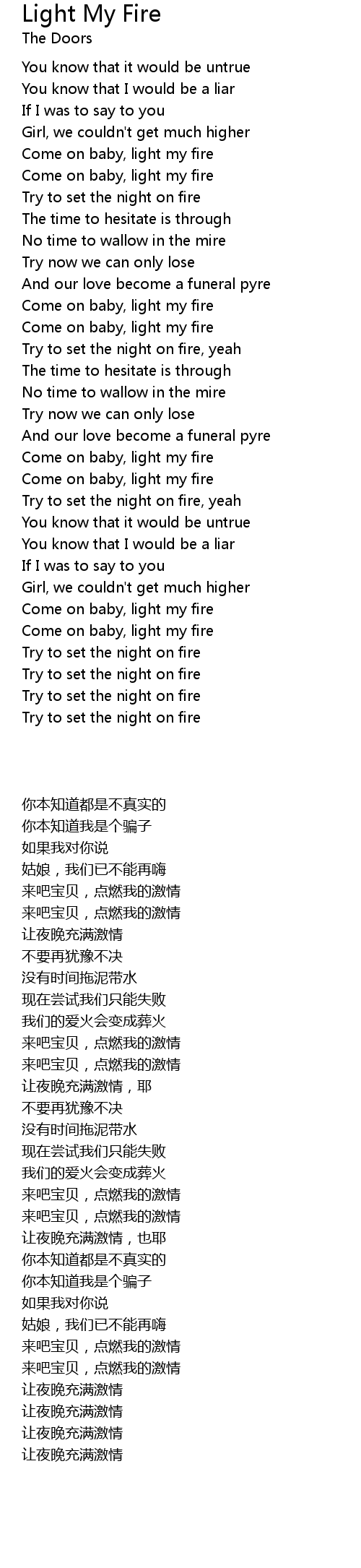 Come on baby, light my fire |