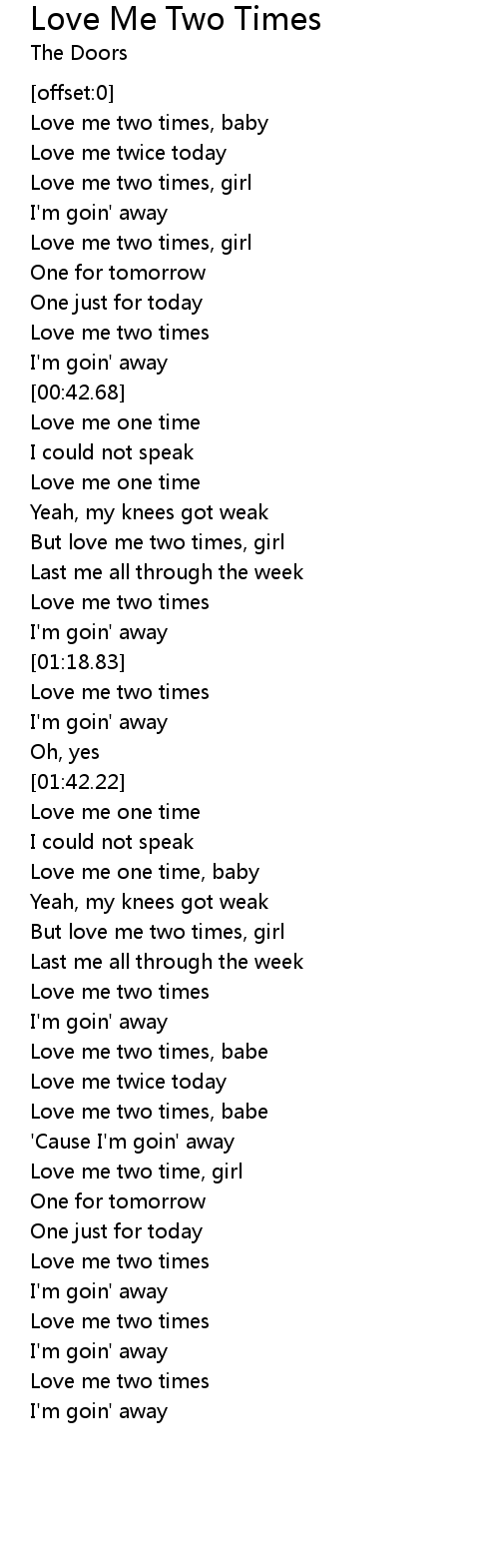 Love me two times, baby |