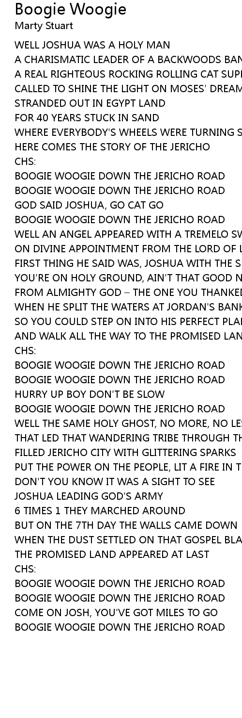 | BOOGIE WOOGIE DOWN THE JERICHO ROAD | |
