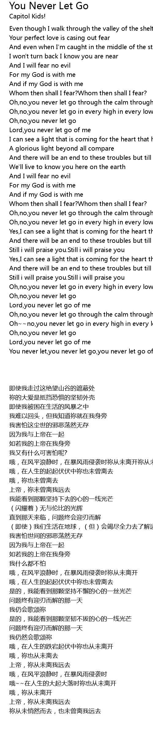 Oh,no,you never let go through the calm through through the storm |