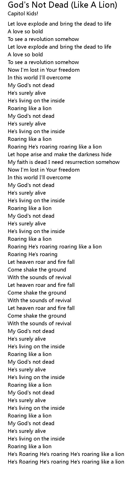 Song God's Not Dead (Like A Lion)