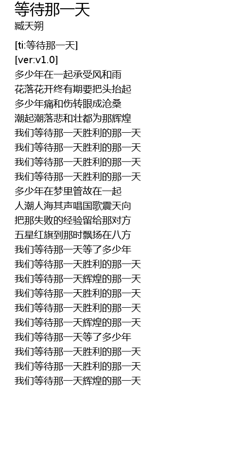 | [00:59.49] | 我们等待那一天胜利的那一天 |