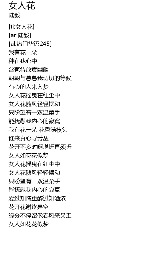 | [01:35.92] | nv ren ru hua hua shi meng |