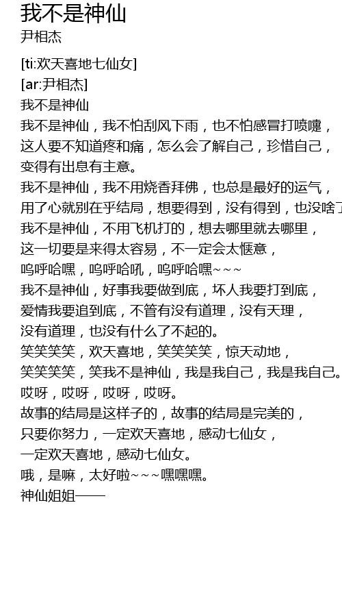 | [00:23.542] | 我不是神仙,我不怕刮风下雨,也不怕感冒打喷嚏, |