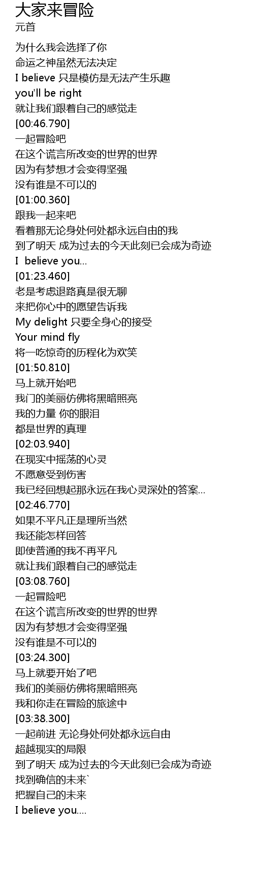 | [03:11.170] | 一起冒险吧 |