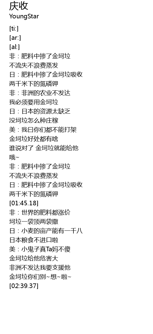 | [00:48.37] | 日:肥料中掺了金坷垃吸收 |