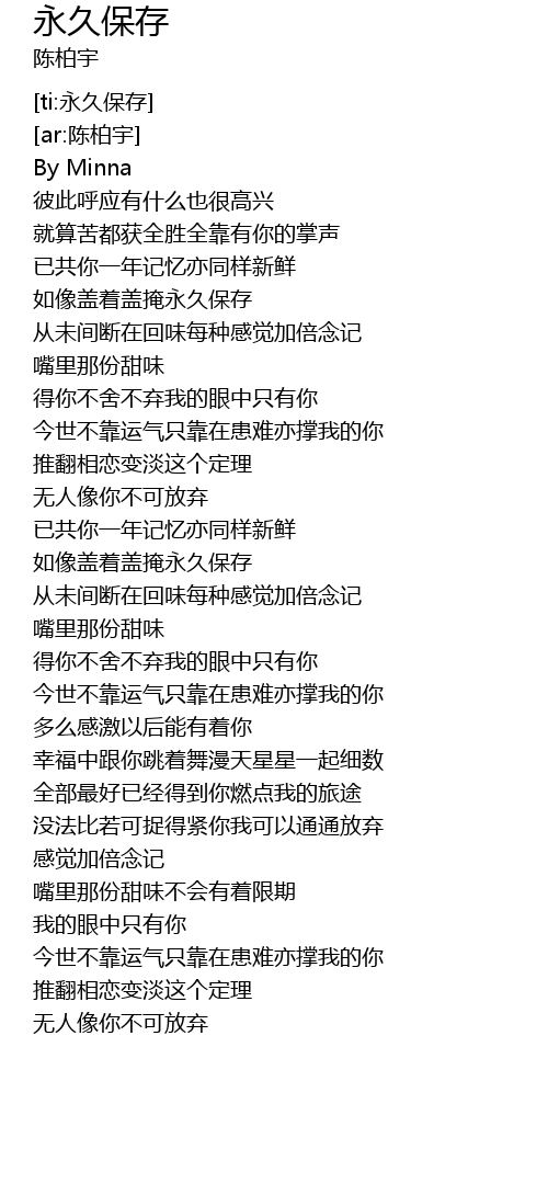 | [00:28.165] | 如像盖着盖掩永久保存 |