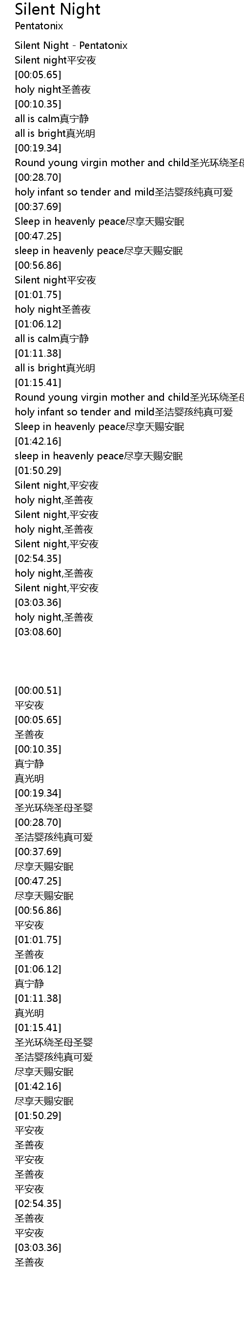 | [01:25.08] | holy infant so tender and mild圣洁婴孩纯真可爱 |