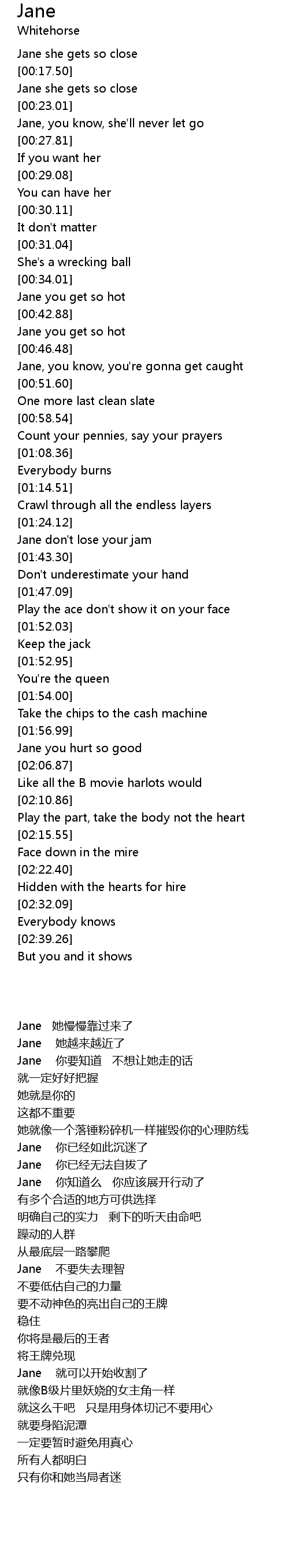 Jane she gets so close |