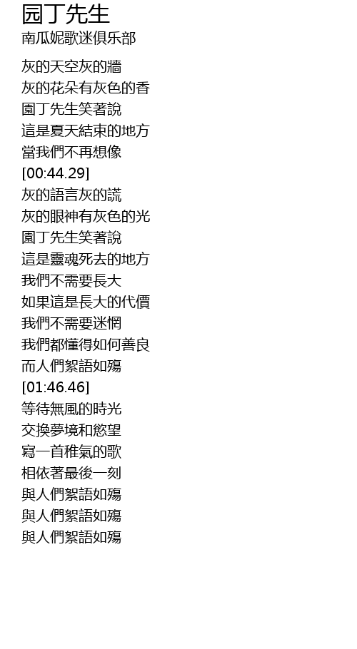 | [00:23.22] | 灰的花朵有灰色的香 |