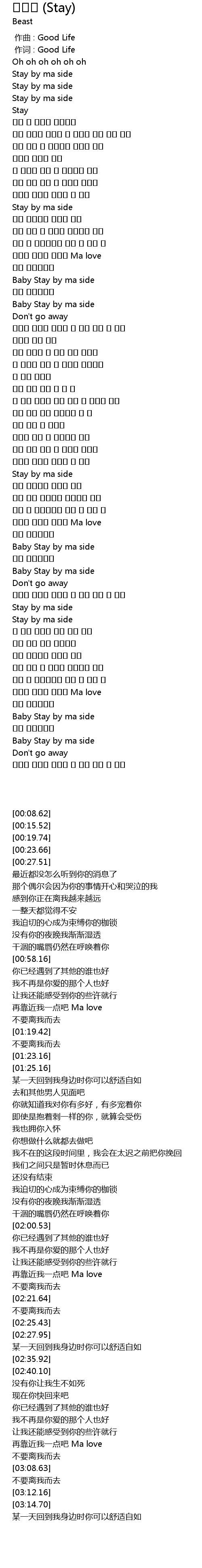 | [03:02.63] | 있어줘 가까이 있어줘 Ma love |