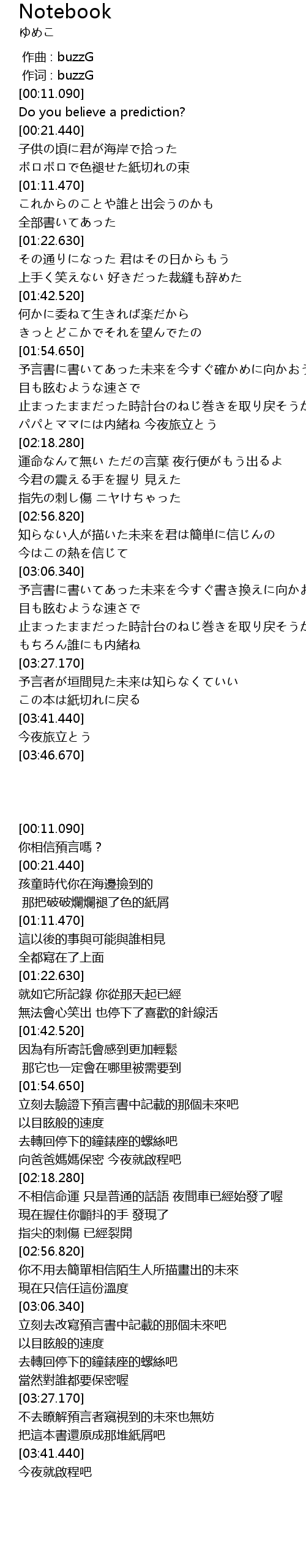 | [01:54.740] | 予言書に書いてあった未来を今すぐ確かめに向かおうか |