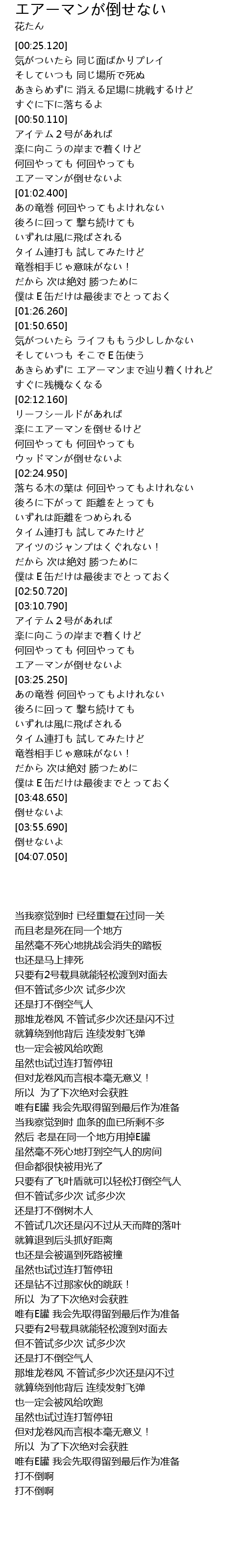 | [02:01.800] | あきらめずに エアーマンまで辿り着くけれど |