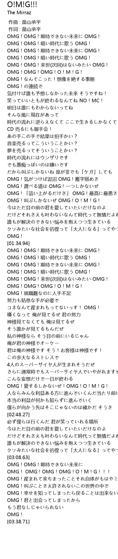 | [03:18.46] | OMG! OMG! OMG! OMG! O! M! G!!! |