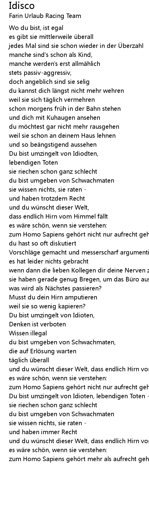| Du bist umzingelt von Idioten, lebendigen Toten | |
