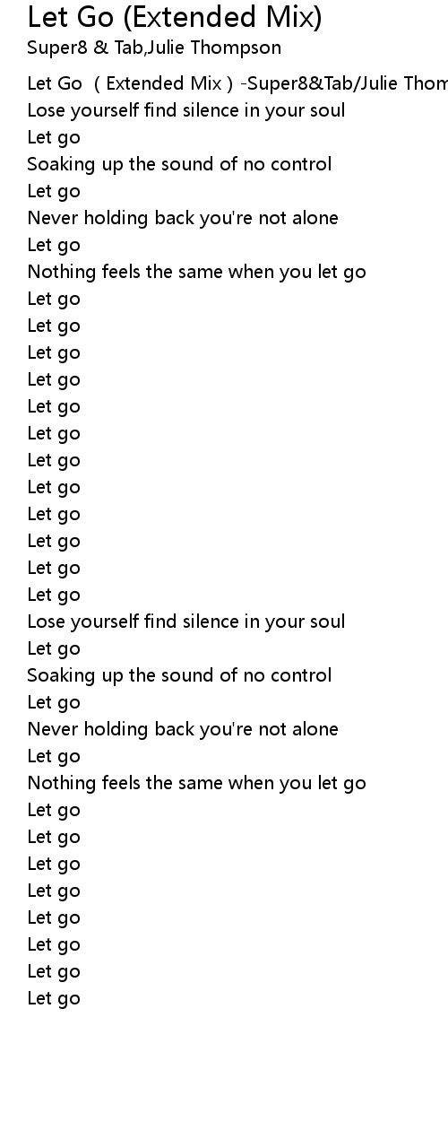 | [00:00.623] | Let Go Extended Mix Super8 Tab Julie Thompson |