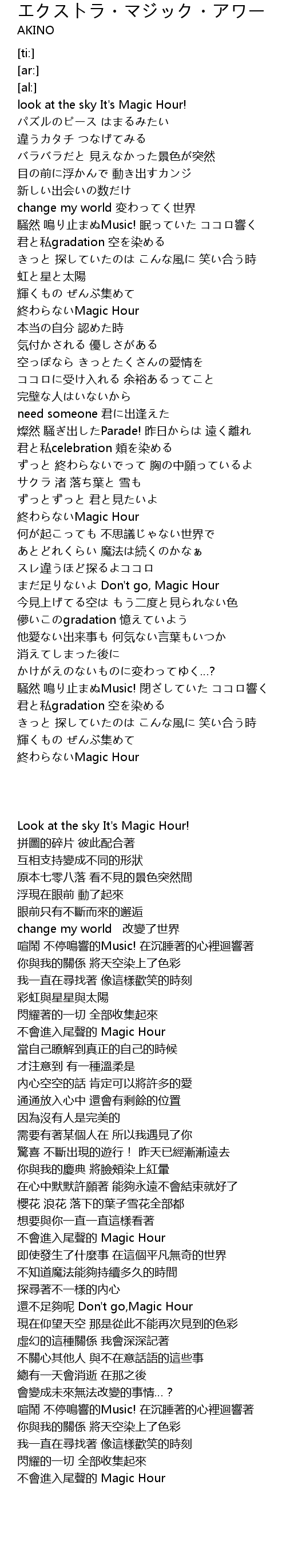 | [03:58.02] | 終わらないMagic Hour |