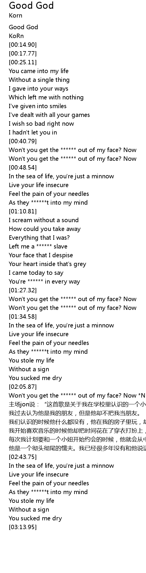 | [00:45.01] | Won't you get the ****** out of my face? Now |