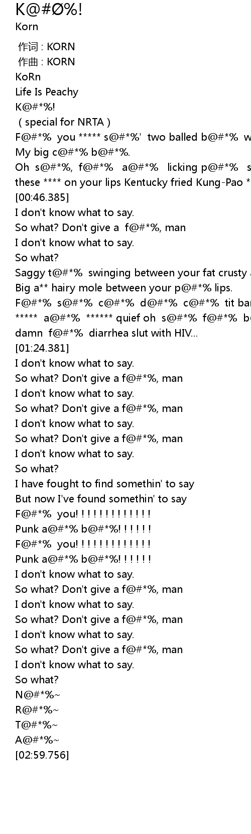| [00:00.000] | 作词 : KORN |