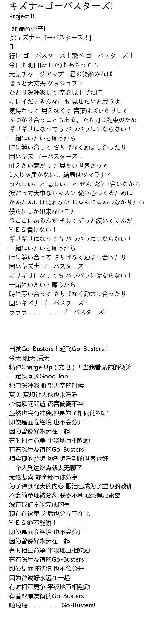 | [03:19.73] | 固いキズナ ゴーバスターズ! |