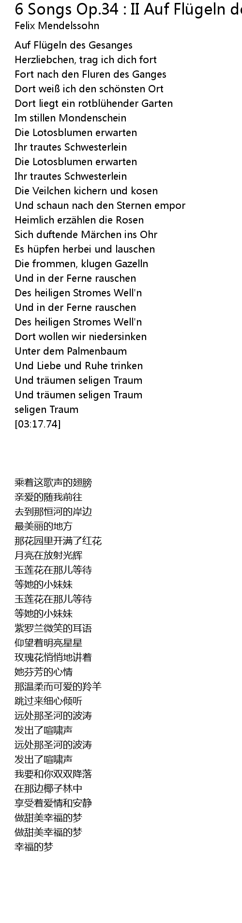 | Song | 6 Songs Op.34 : II Auf Flügeln des Gesanges Op.34 No.2 |