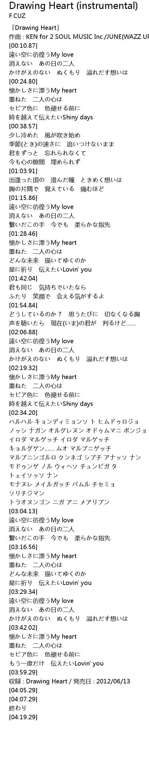 | [04:00.29] | shōu lù Drawing Heart fā mài rì 2012 06 13 |