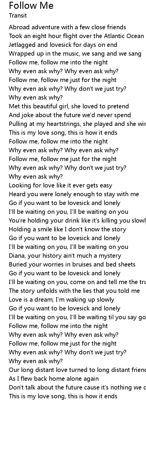 | Follow me, follow me just for the night | |