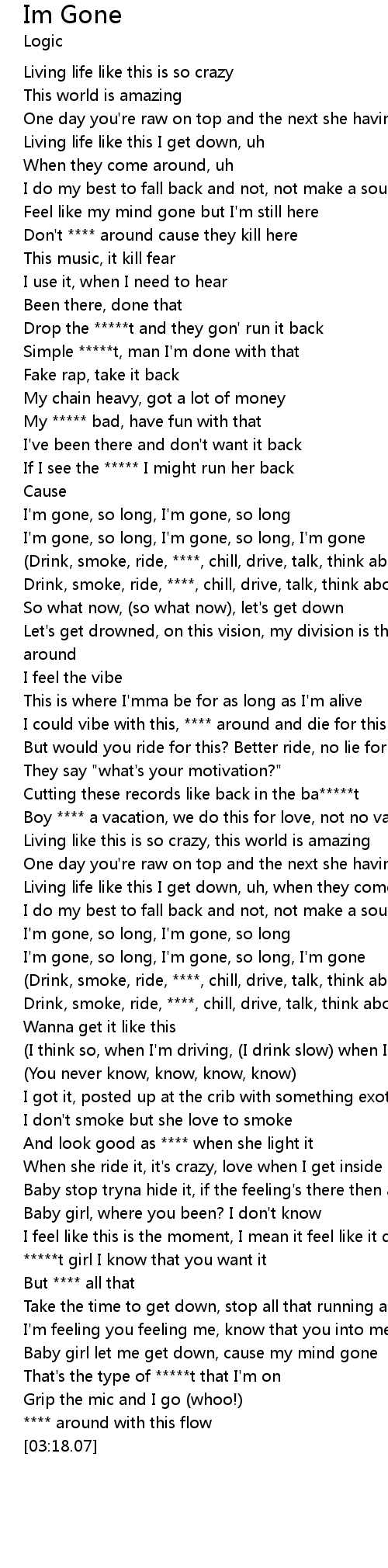 I'm gone, so long, I'm gone, so long, I'm gone |