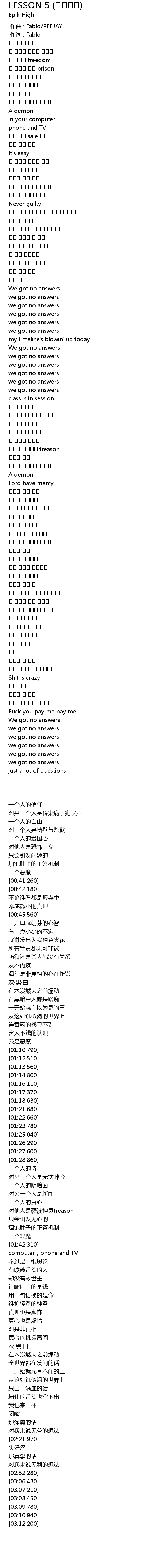 | [00:01.00] | 作词 : Tablo |
