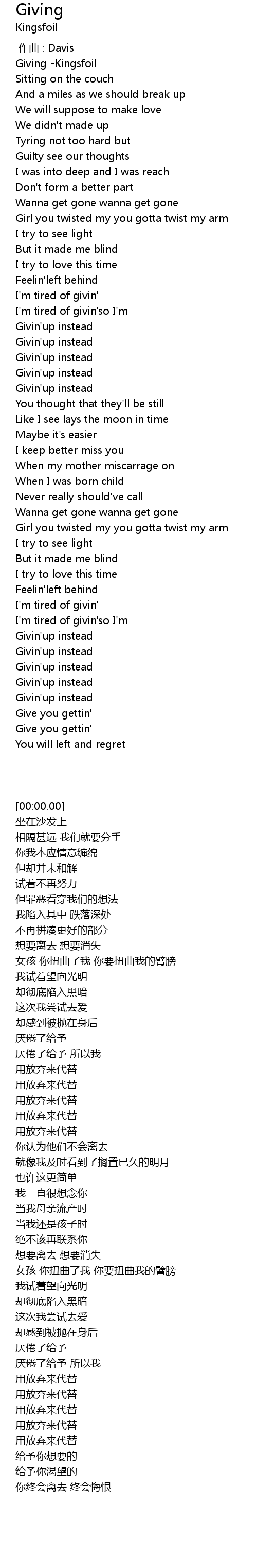 | [00:00.00] | Giving -Kingsfoil |