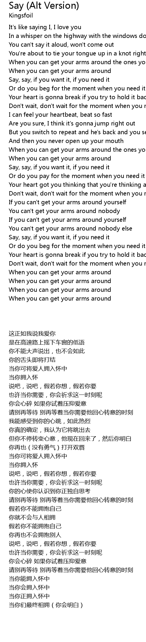 Say (Alt Version) Lyrics
