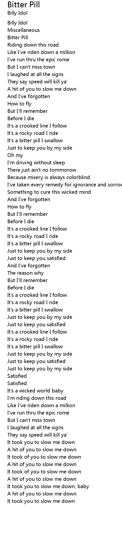 It's a bitter pill I swallow |