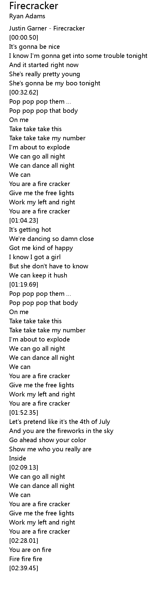 | [00:00.00] | Justin Garner Firecracker |