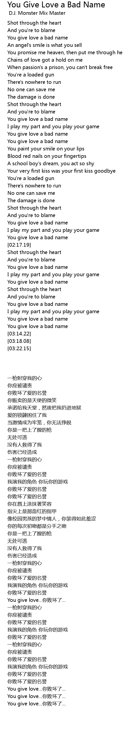 You give love a bad name |