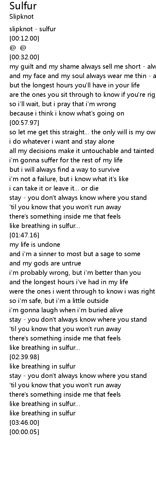 | [00:38.30] | my guilt and my shame always sell me short - always feel the same |