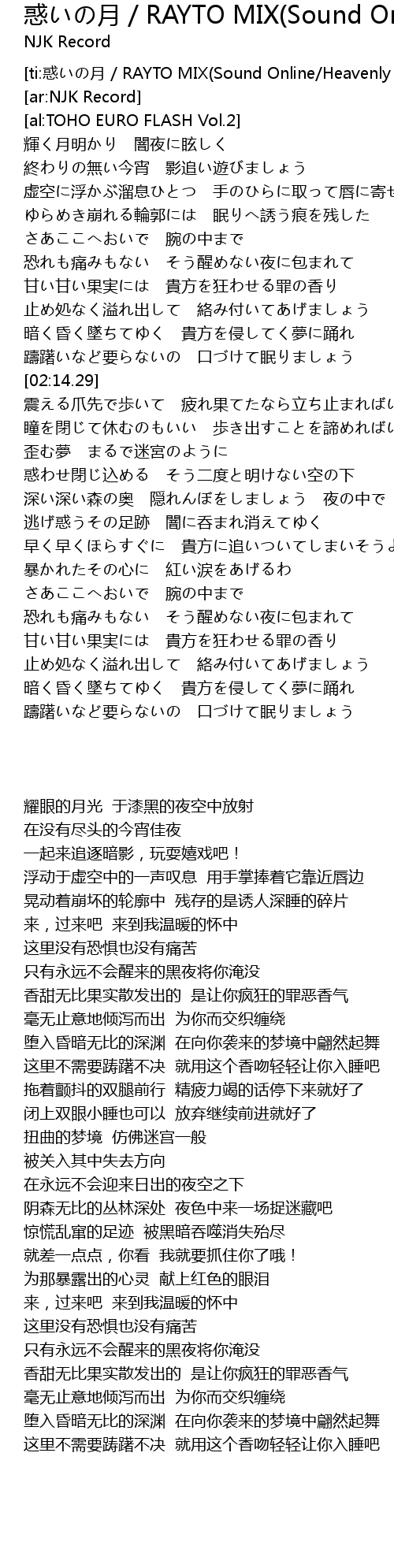 | [ti:惑いの月 / RAYTO MIX(Sound Online/Heavenly Sequence) - remix] | |