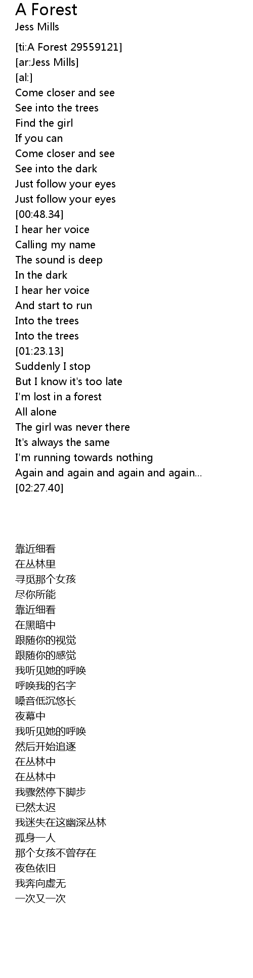 | [00:26.54] | See into the trees |
