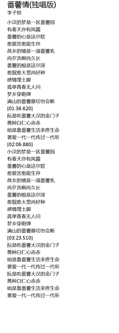 | [02:41.250] | 故乡的情是一滴番薯乳 |