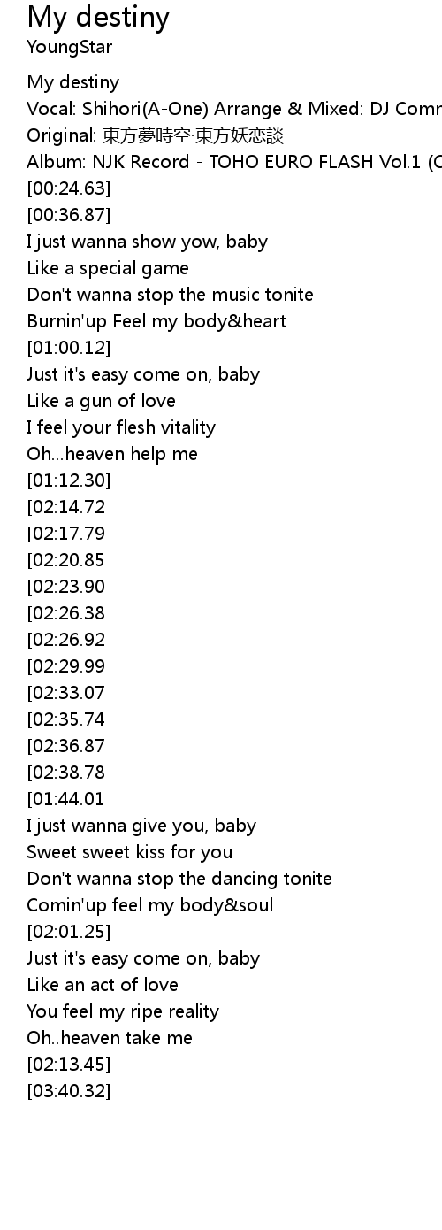 | [00:18.57] | Album: NJK Record - TOHO EURO FLASH Vol.1 (C78) |