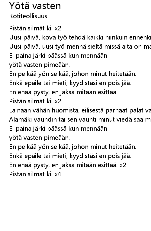 | En enää pysty, en jaksa mitään esittää. x2 | |