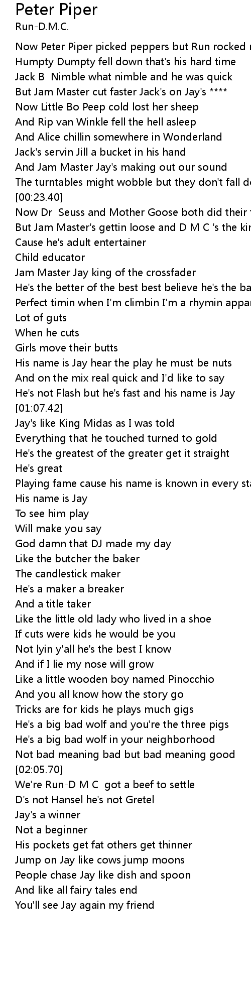 Now Peter Piper picked peppers but Run rocked rhymes |