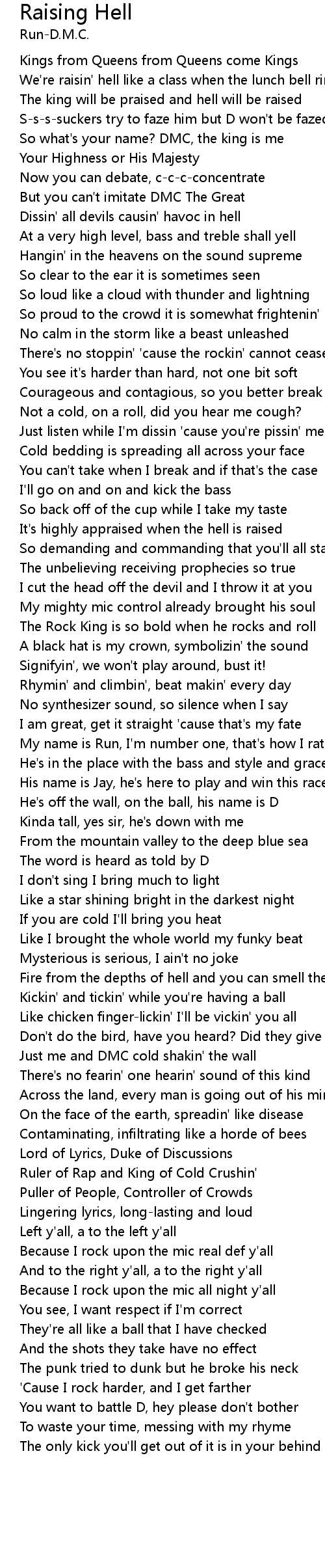 Dissin' all devils causin' havoc in hell |