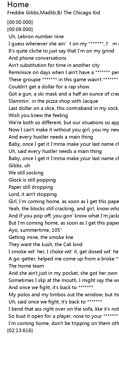 | [01:47.949] | I'm coming home, don't be tripping on them other hoes |