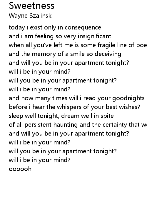 and will you be in your apartment tonight? |